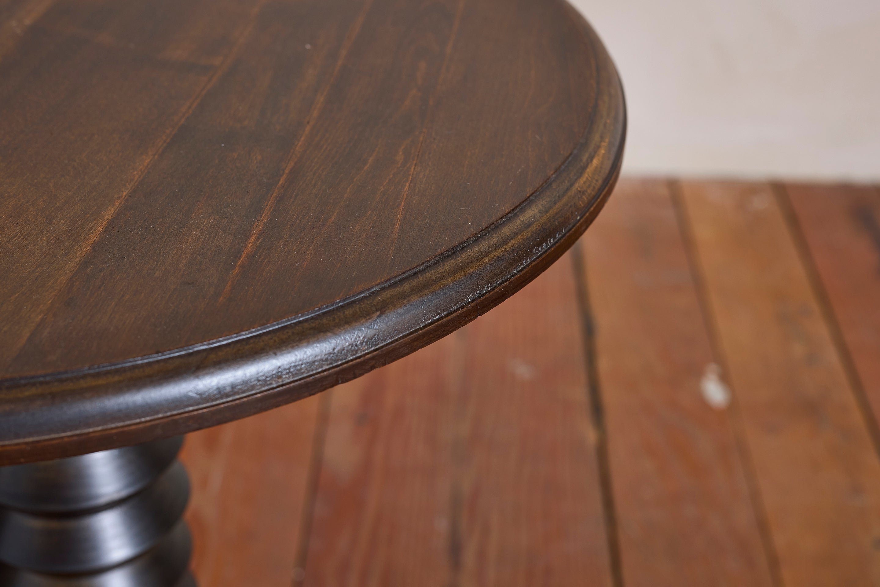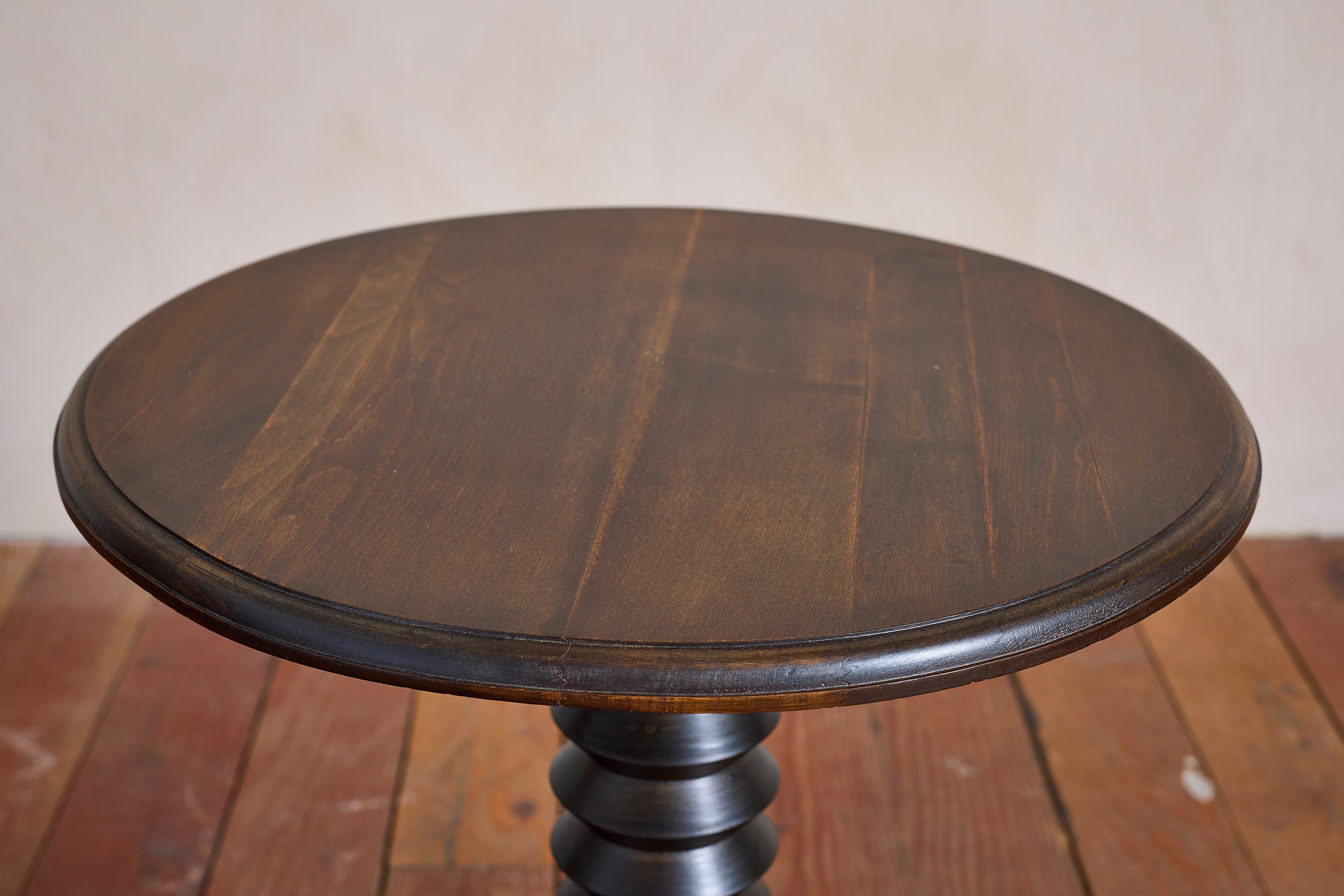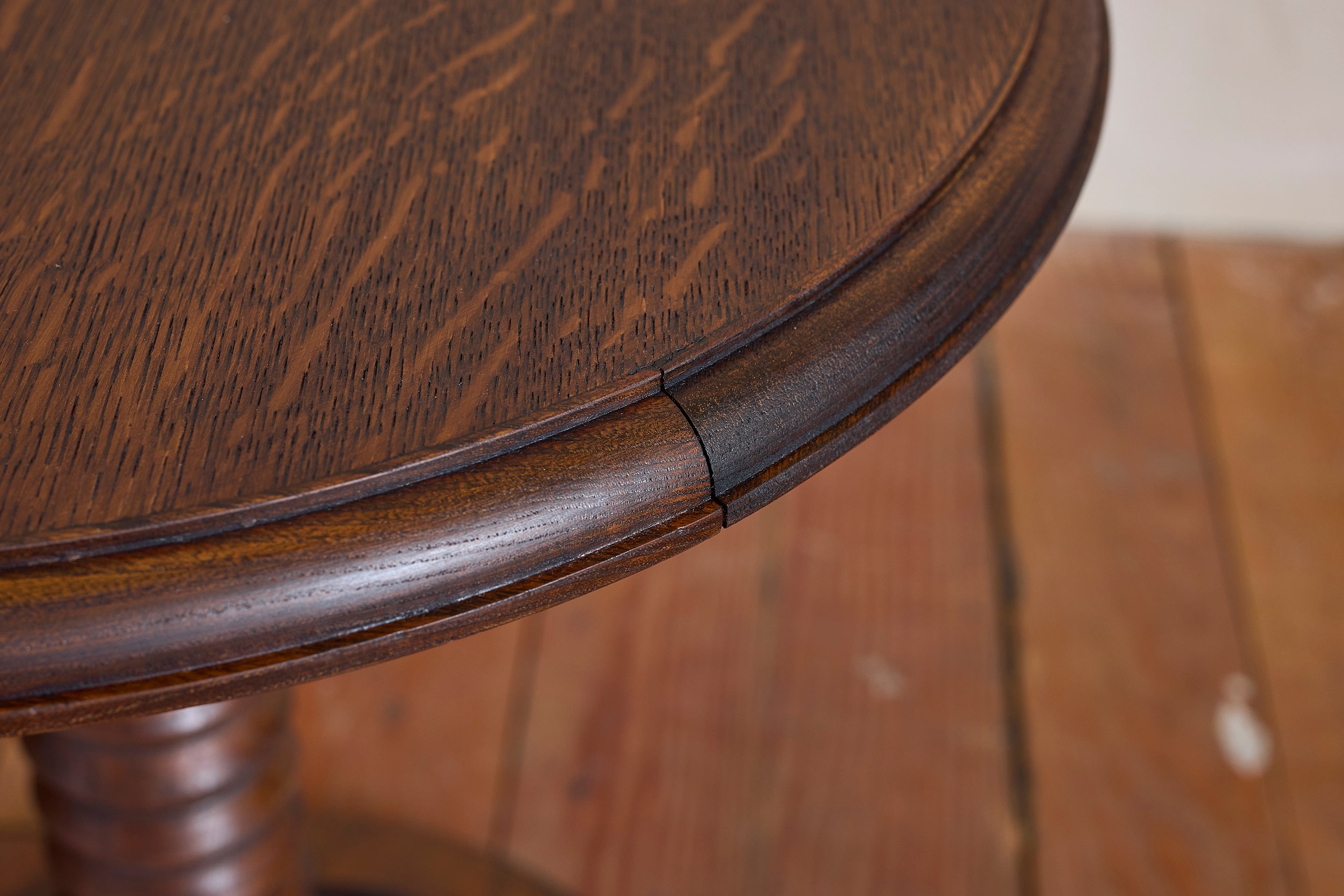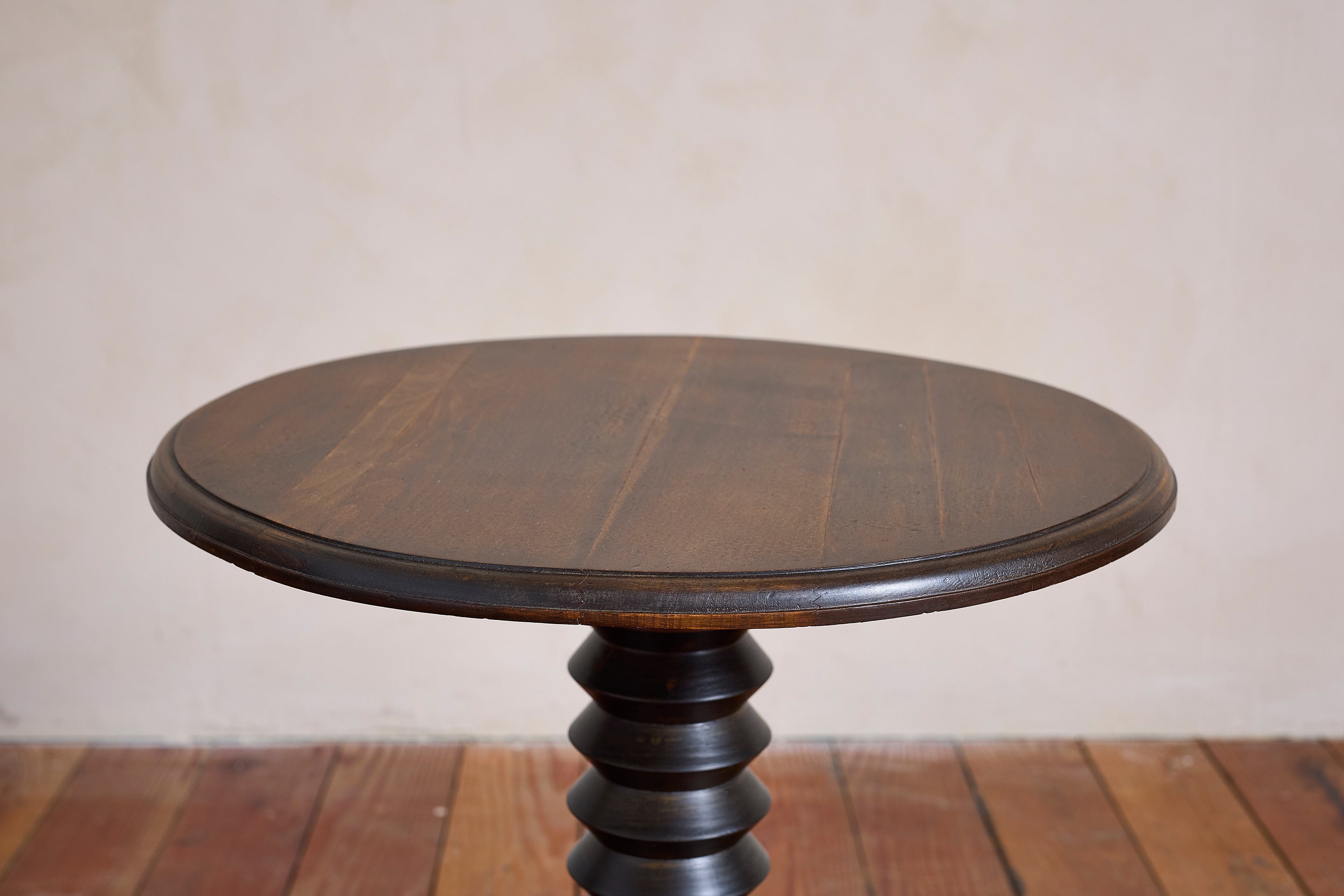 Charles Dudouyt side table with signature corkscrew base - France, 1940s Pedestal with circular concentric base. Wonderful dark patina. : 22"H x 19.75"D Materials: Oak... View full product details