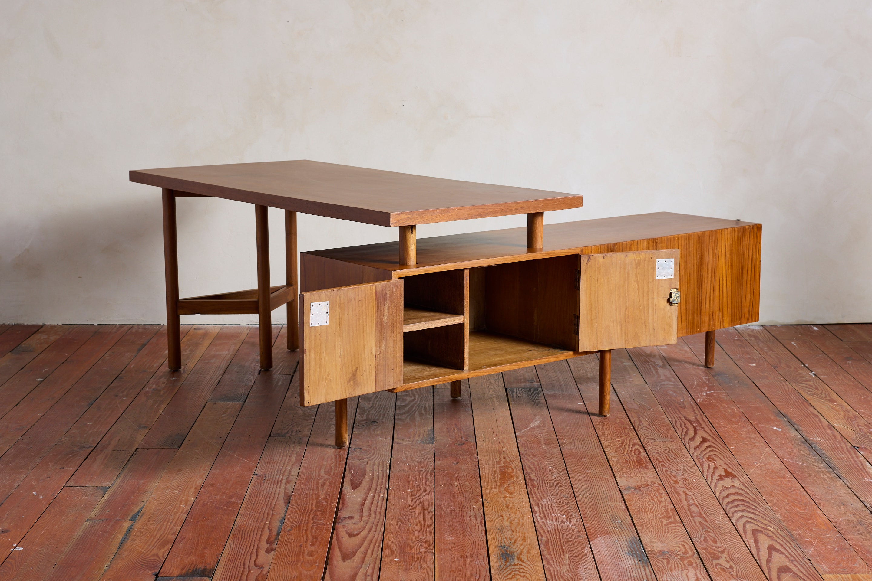 ABOUT Pierre Jeanneret Desk, 1960's Rare “Writing Table for Junior Officers” in rosewood. Rectangular top supported on one side by a tripod base and on... View full product details