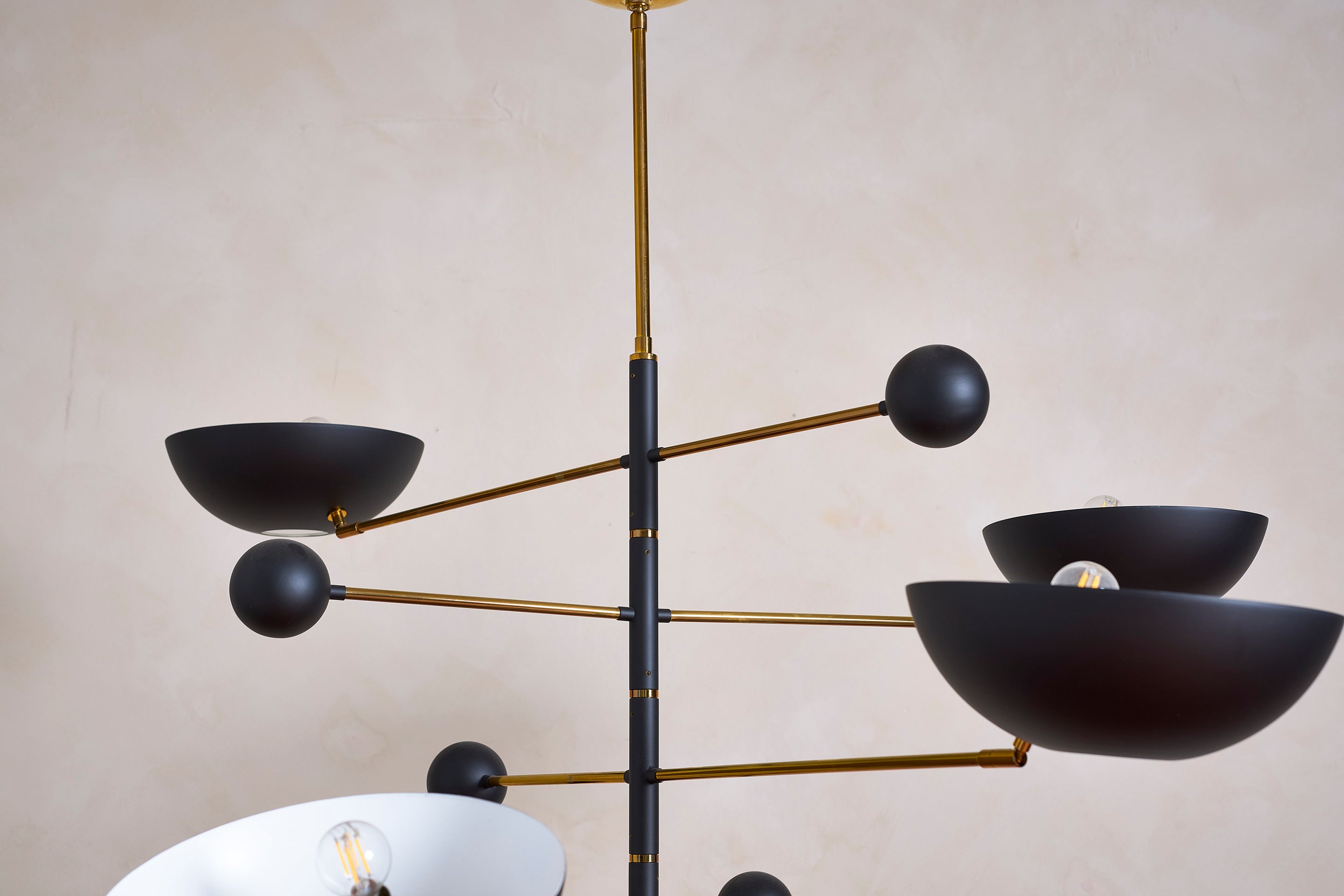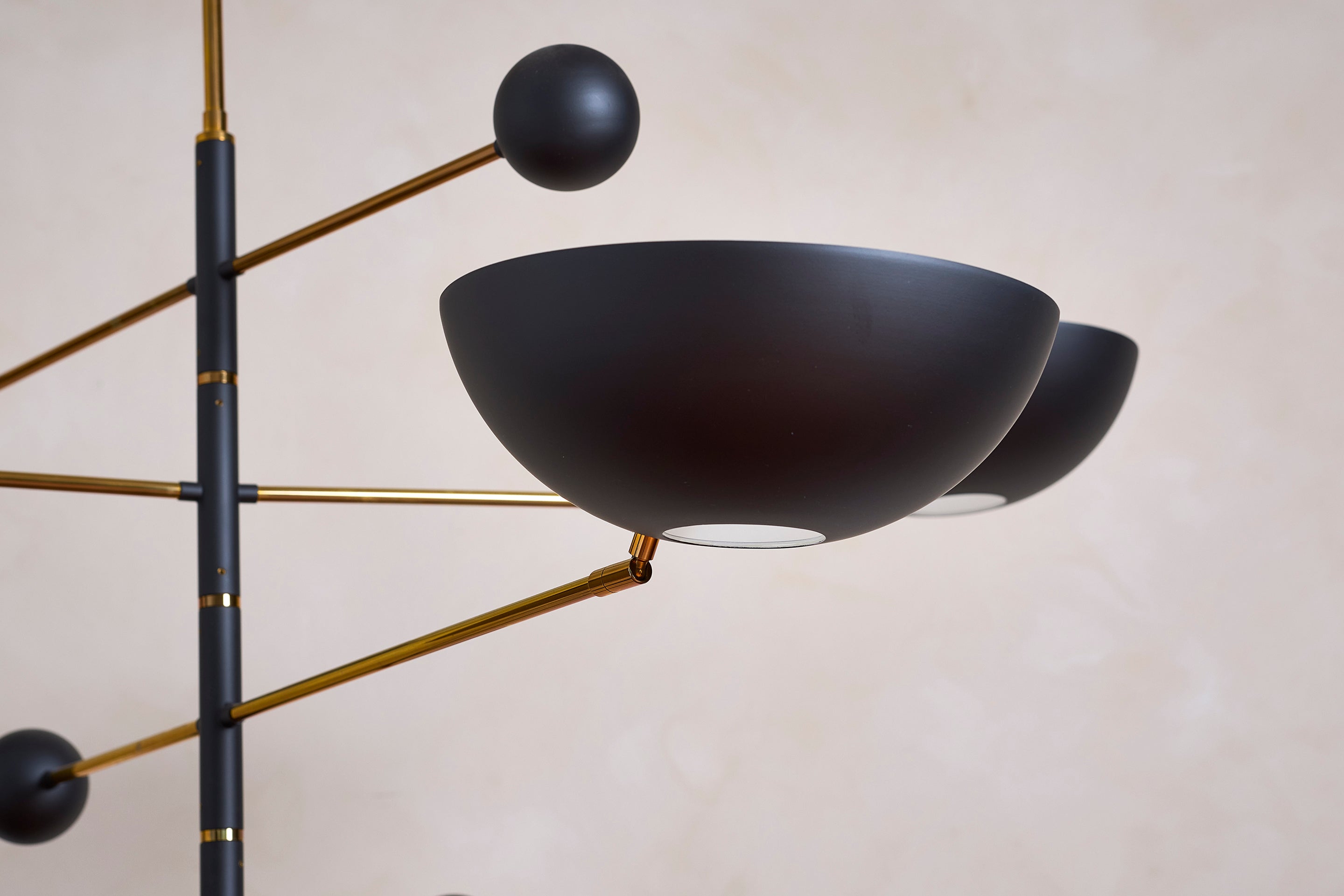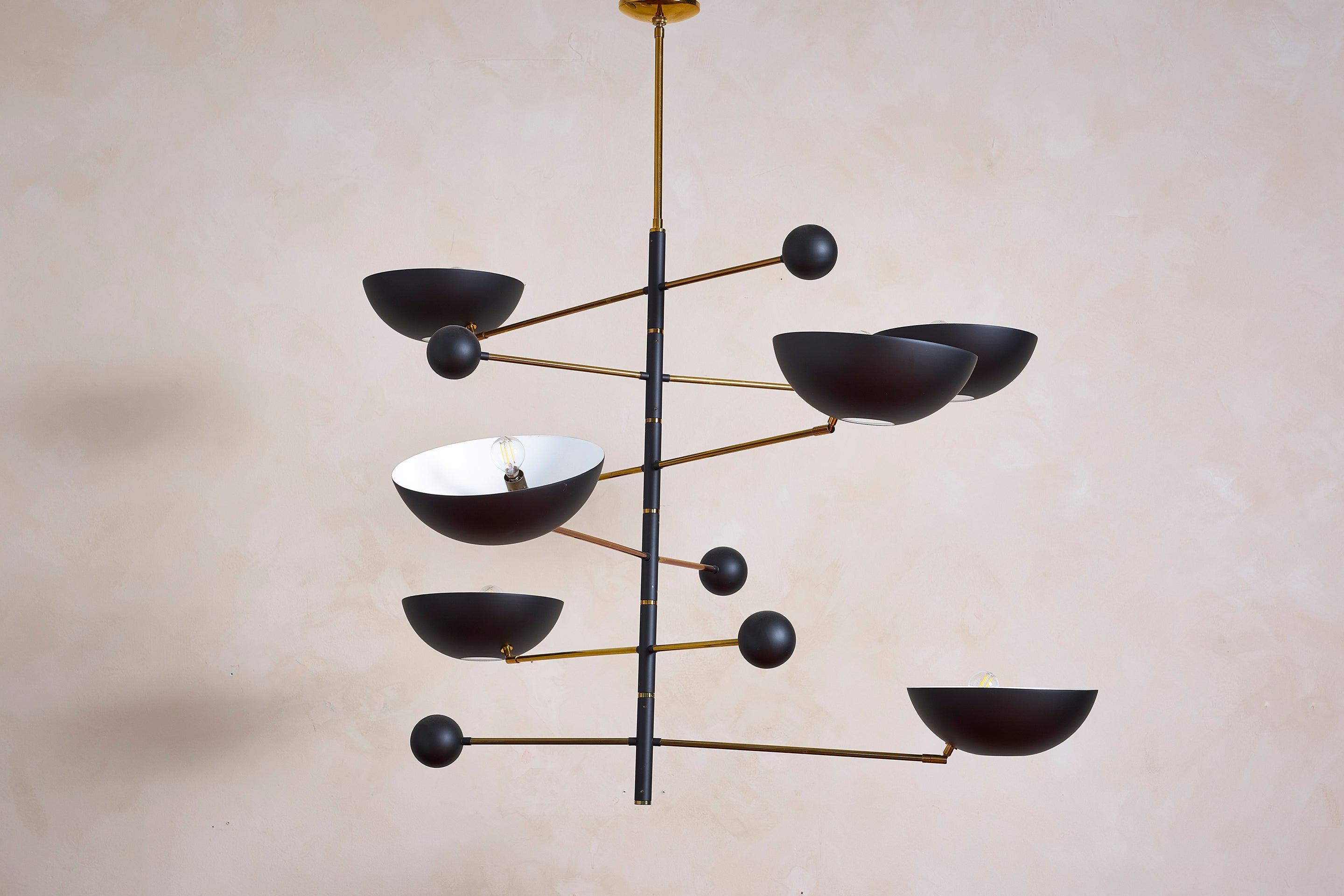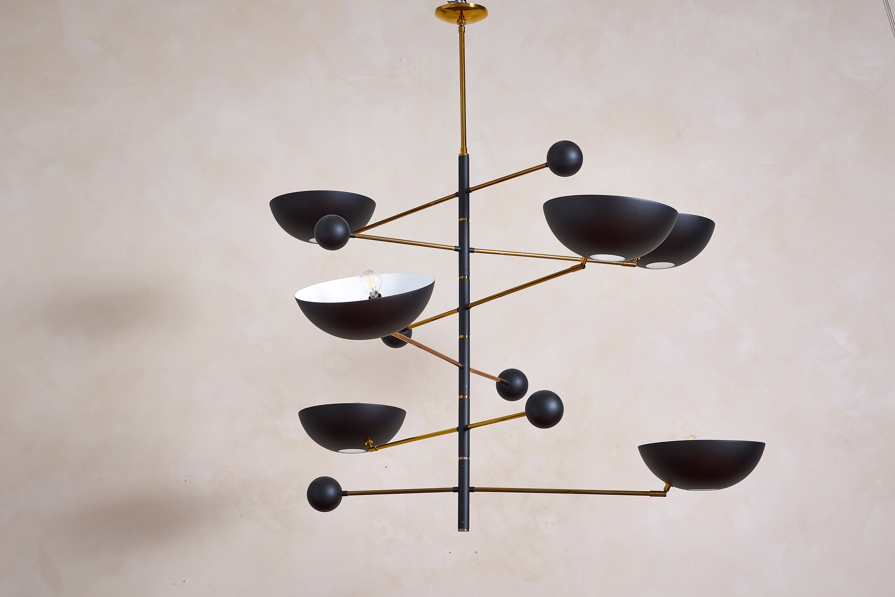 About Incredible Italian ceiling light with 7 solid brass dome cups floating on thin black metal arms. Illuminates beautifully. Newly produced in Italy, wired to... View full product details