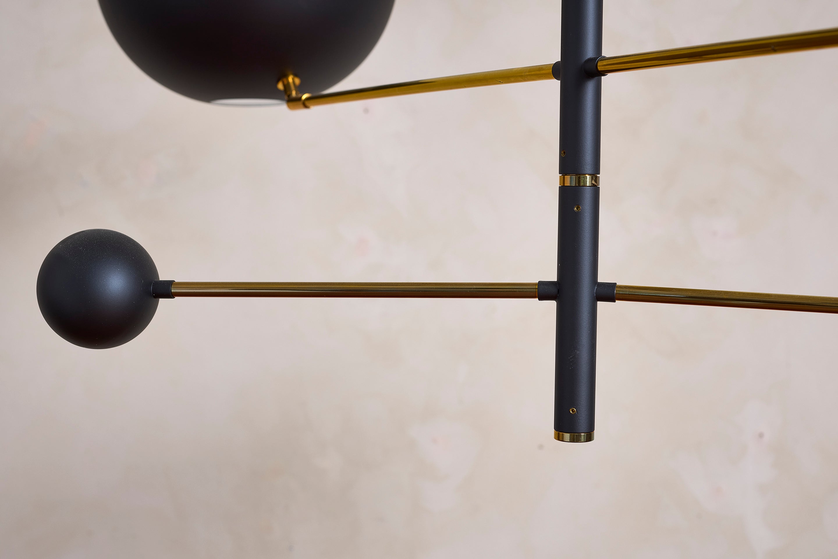 Impressively sized chandelier in the style of Sarfatti - Newly produced in Italy Black discs with coordinating counter balance balls. Can be customized in size... View full product details