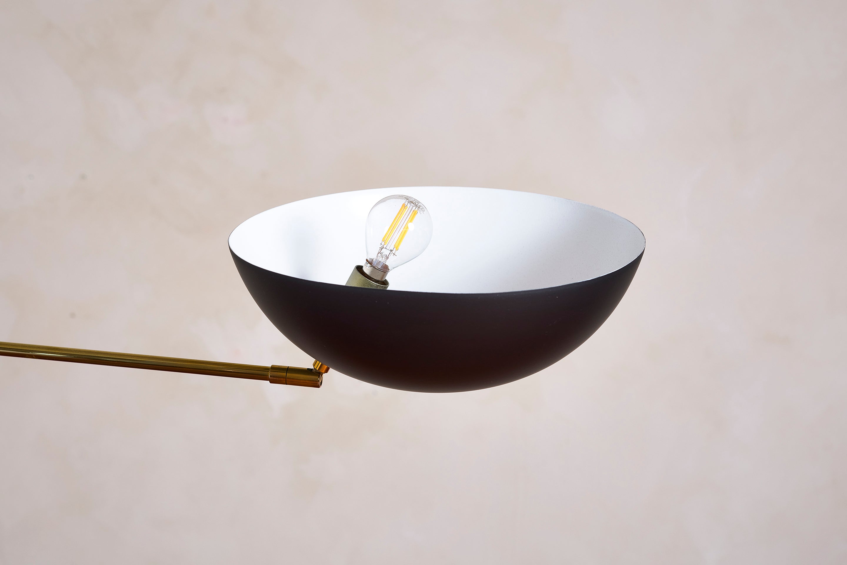 About Beautiful Florian Schulz counter balance pendant. Black cloth wrap cord with polished brass weight and pulley and sleek brass dome shade. Overall height... View full product details