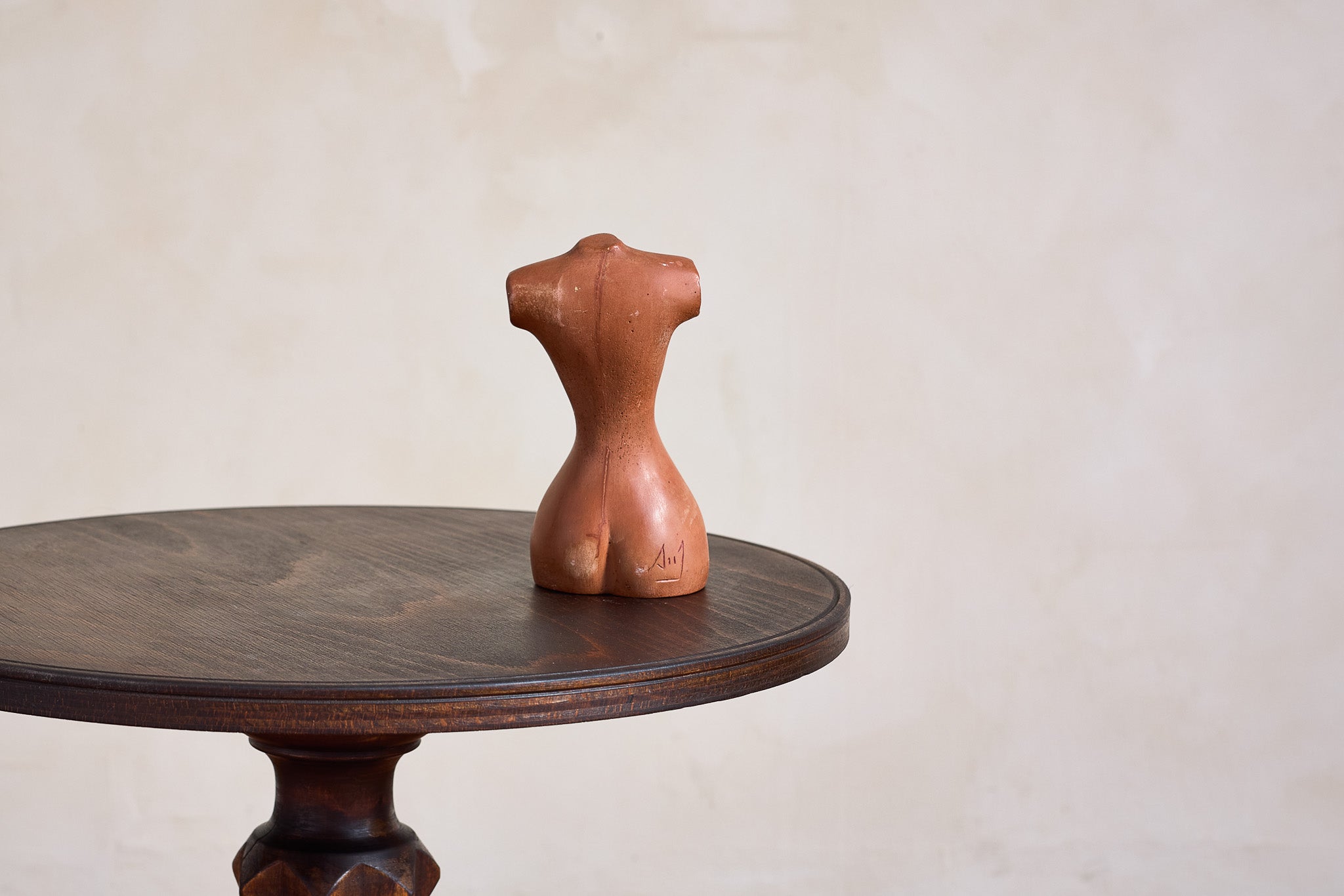 Female clay sculpture with delicate form and intricate detailing. Signed by artist France : 6.5"H x 3.25" W x 3.5"D Materials: Clay Period: 1960s Condition:... View full product details