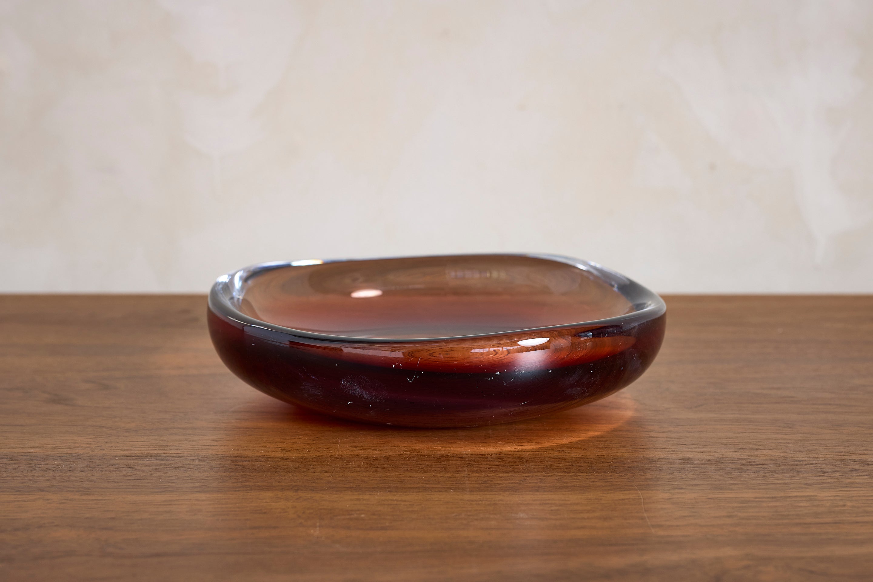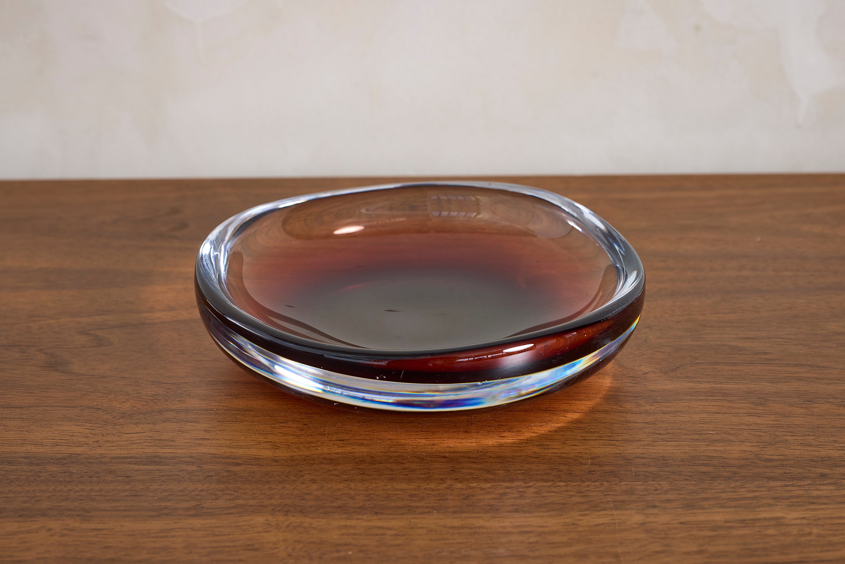 Stunning glass bowl by Orrefors, Sweden 1960s Large in scale and beautiful gradient color : 2"H x 8.5"W x 8.25"D Materials: Glass Place of Origin:... View full product details