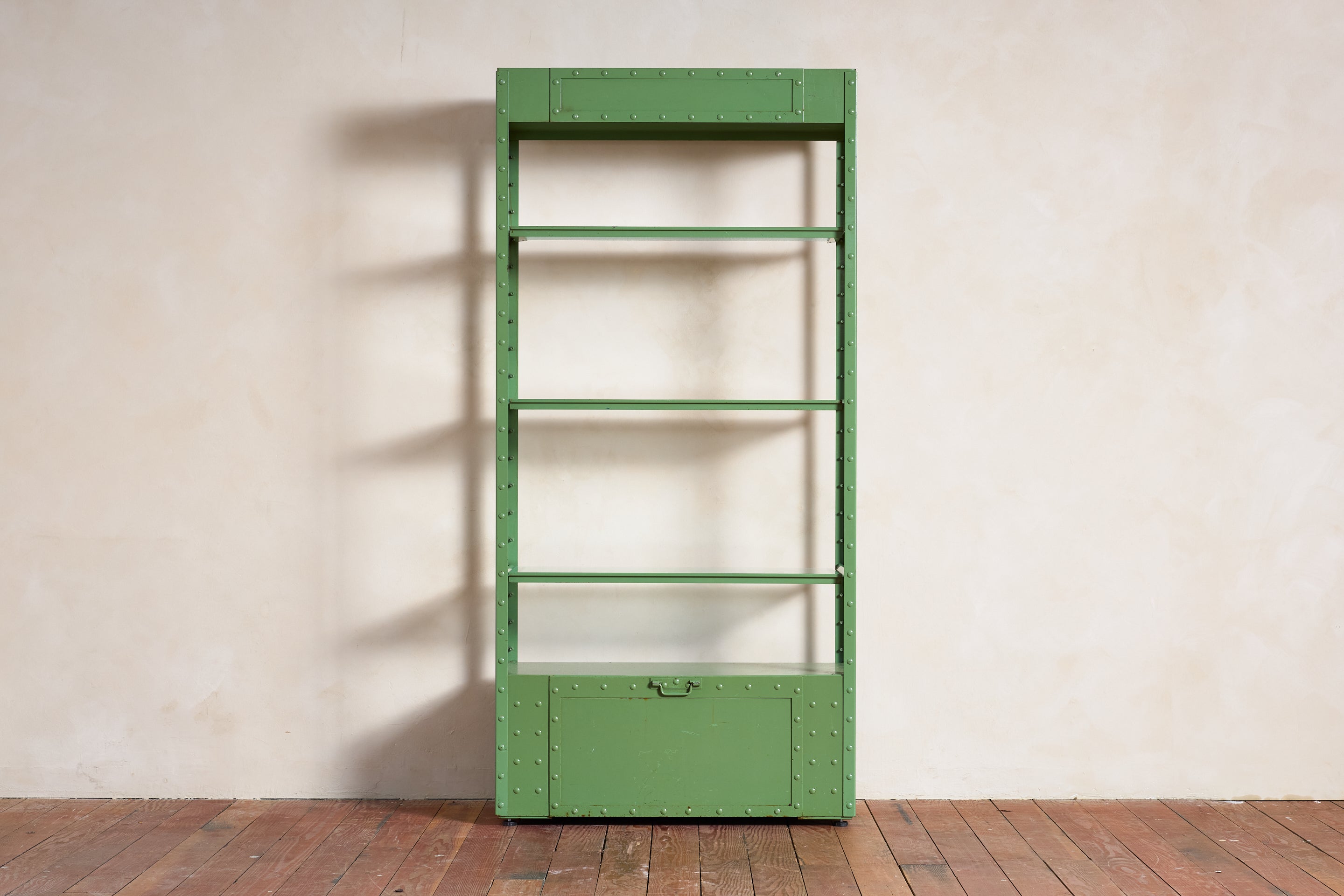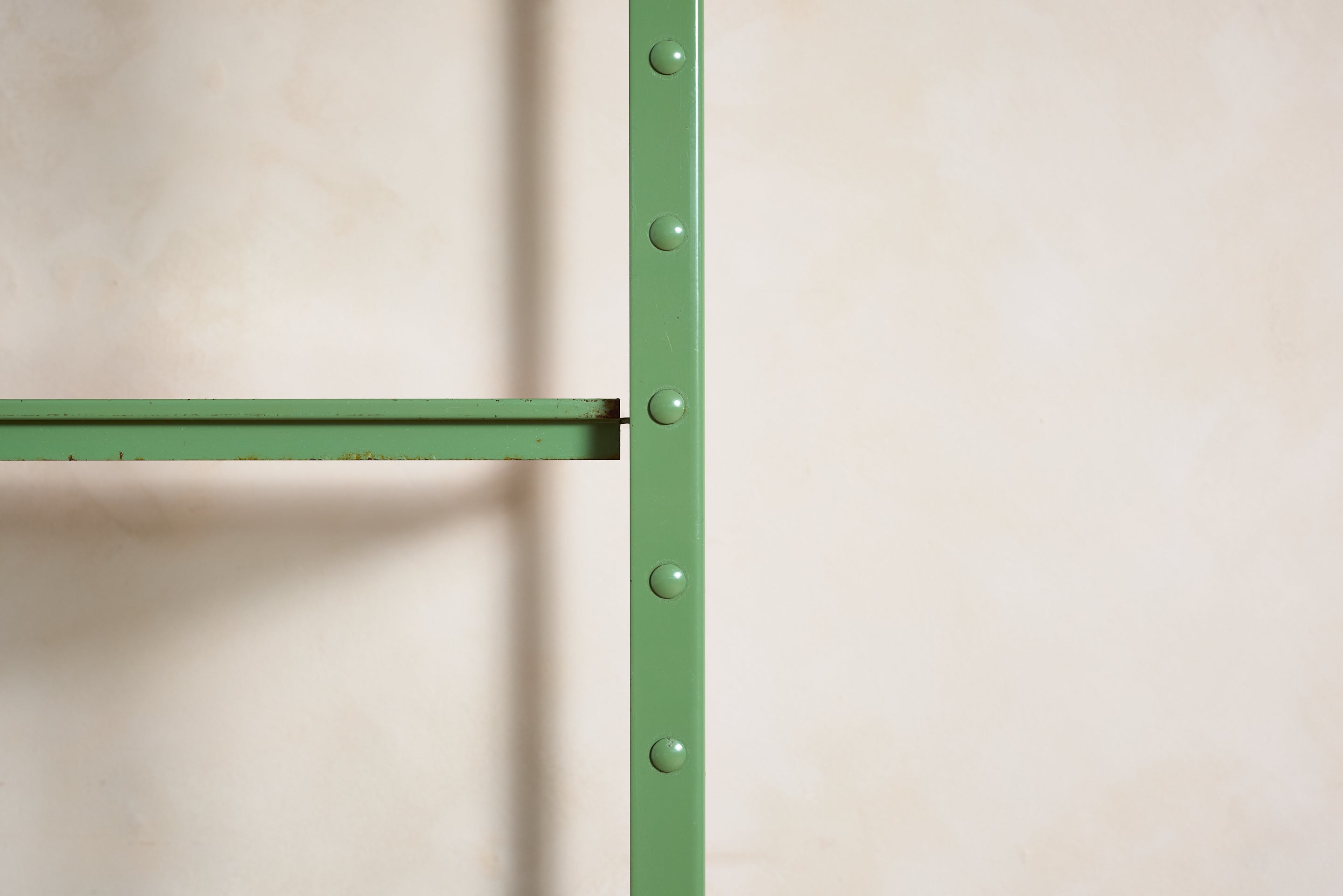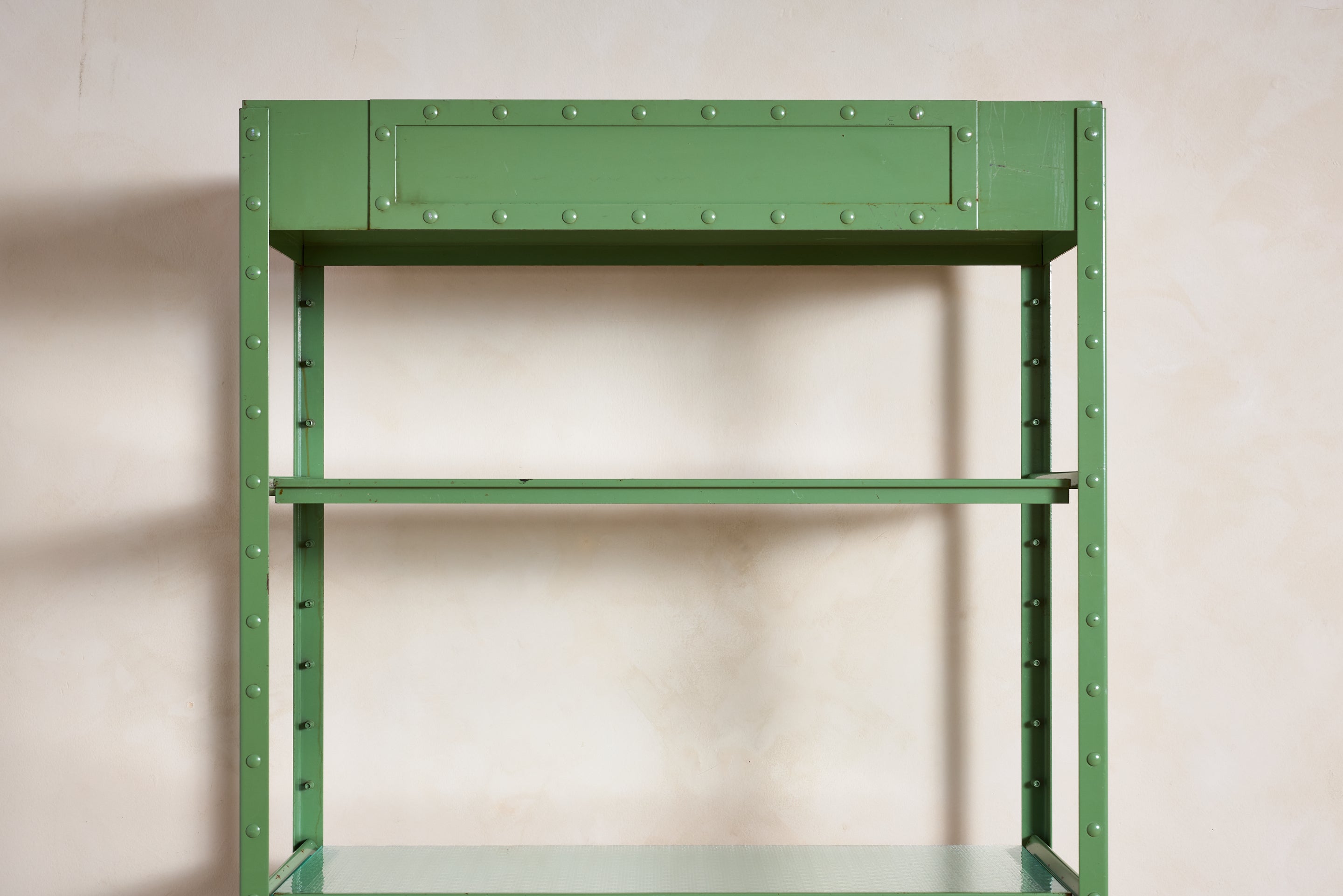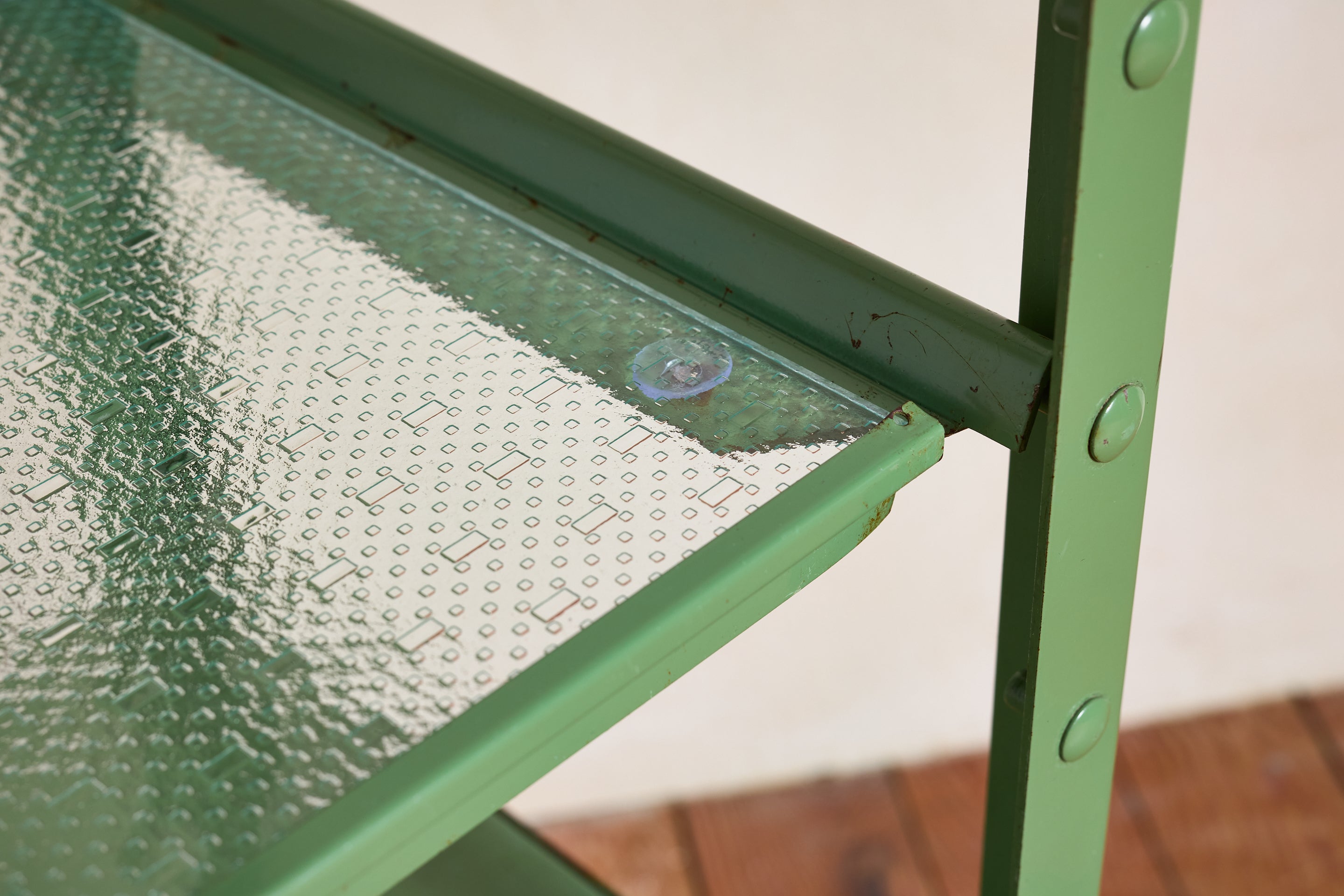 ABOUT A rare find from the souvenir boutique of the Eiffel Tower! Chic green lacquered iron vitrine, adorned with rivet detailing, original etched glass shelves,... View full product details