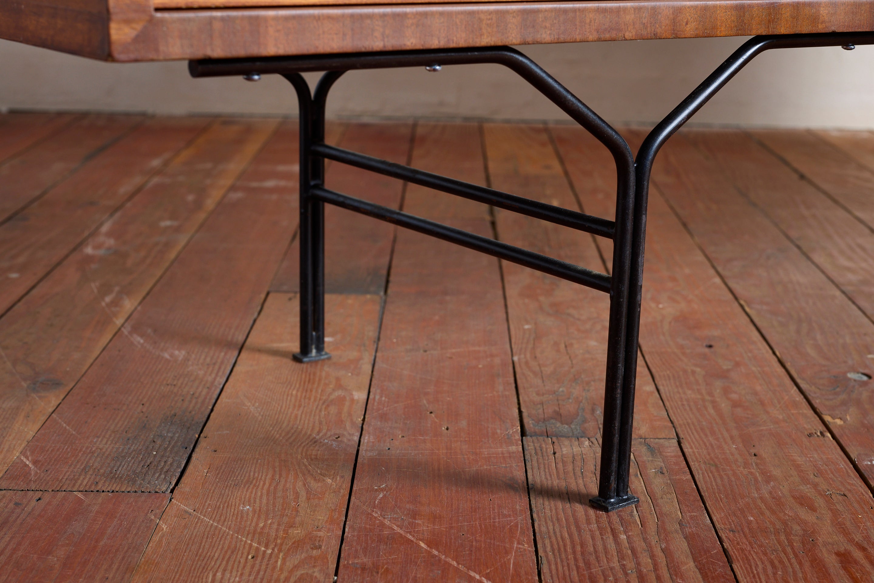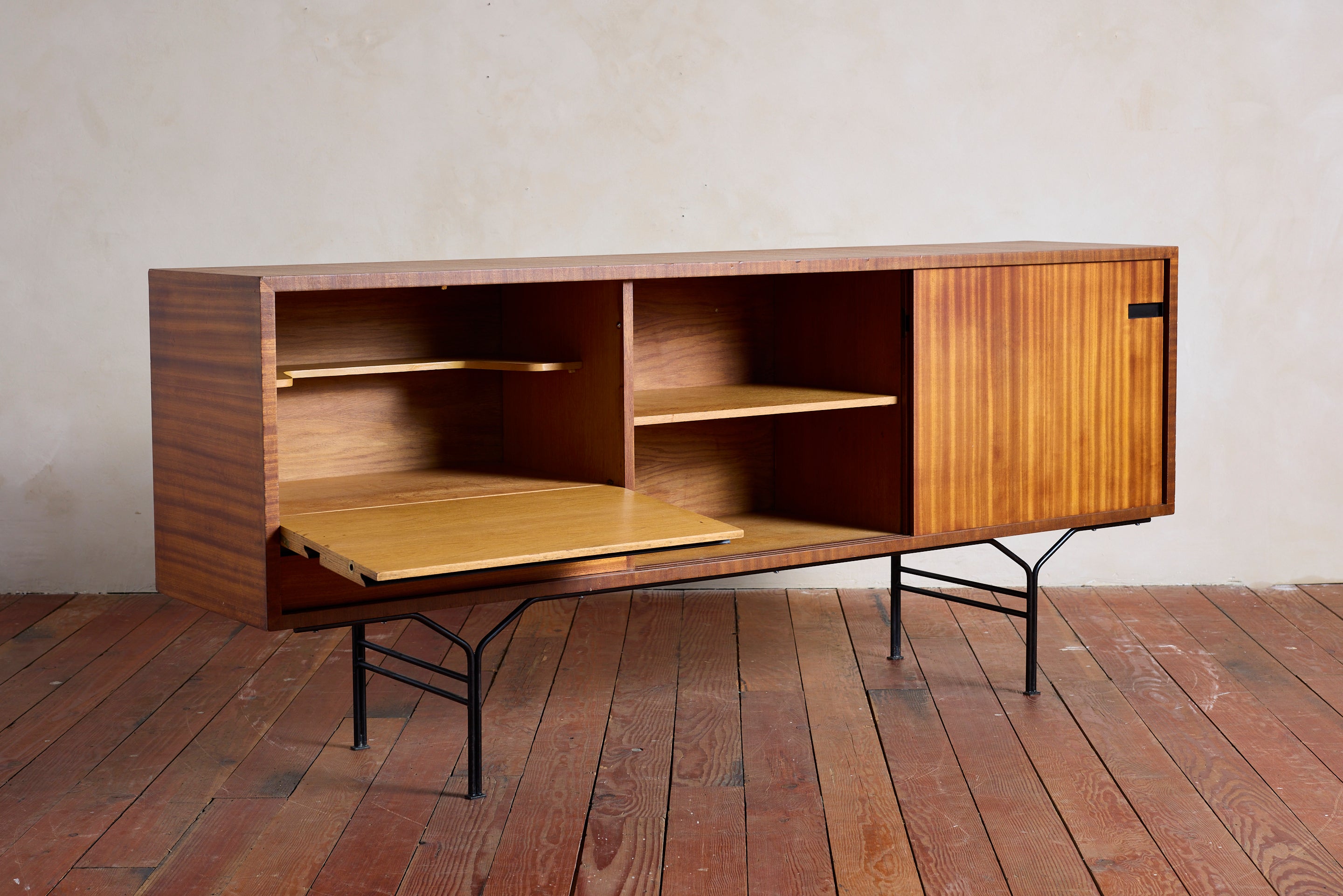 ABOUT Handsome French sideboard by Gerard Guermonprez Constructed of teak with black recessed detail and floating on top of black iron legs. Three drawers and... View full product details