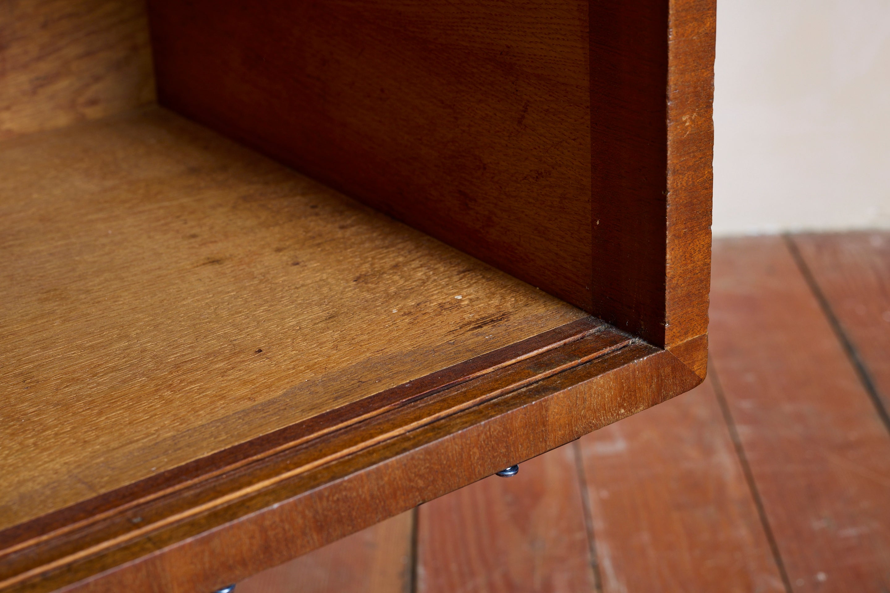 ABOUT Simple walnut Art Deco cabinet with floating curved base. France, 1930's Gorgeous patina to wood, simple brass hardware with original key. 3 drawers open... View full product details