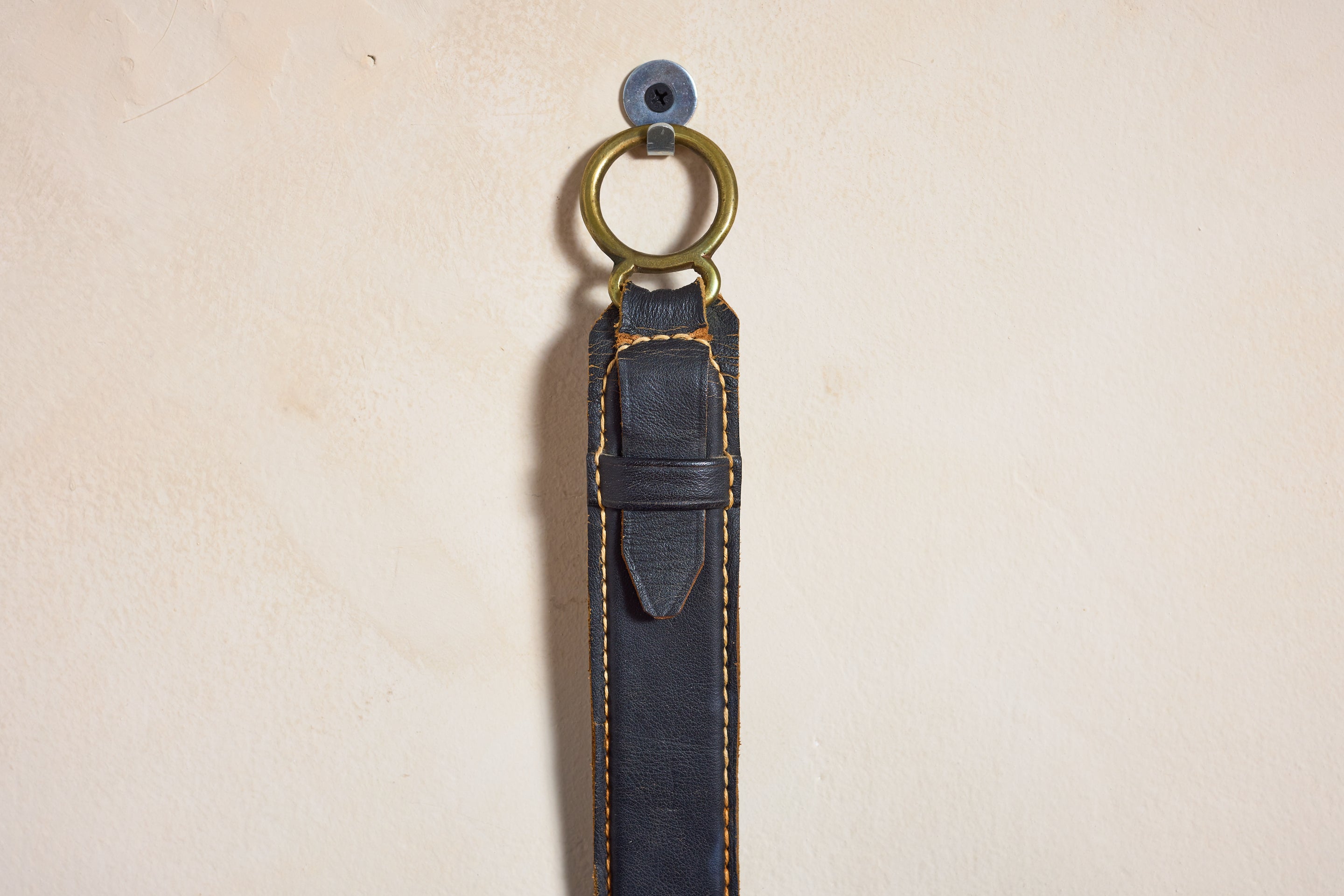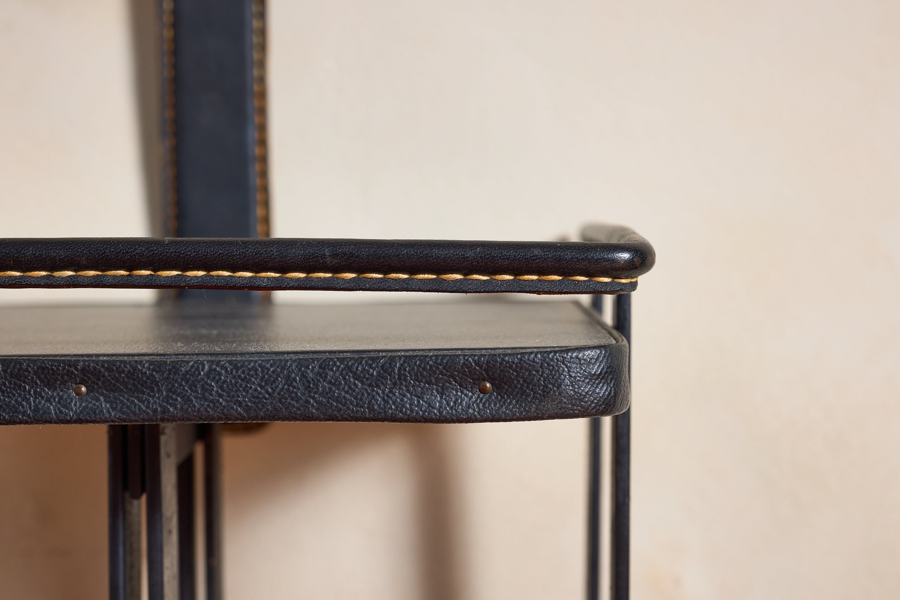 Black leather top with signature white contrast stitching