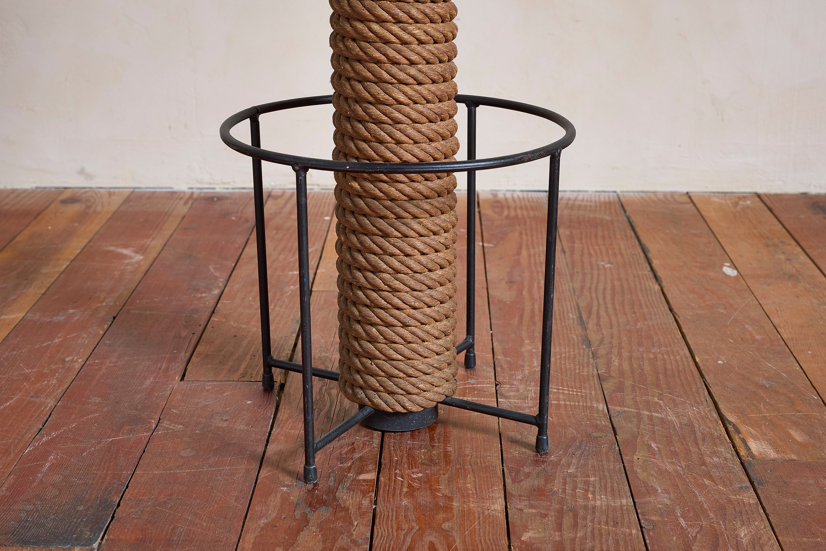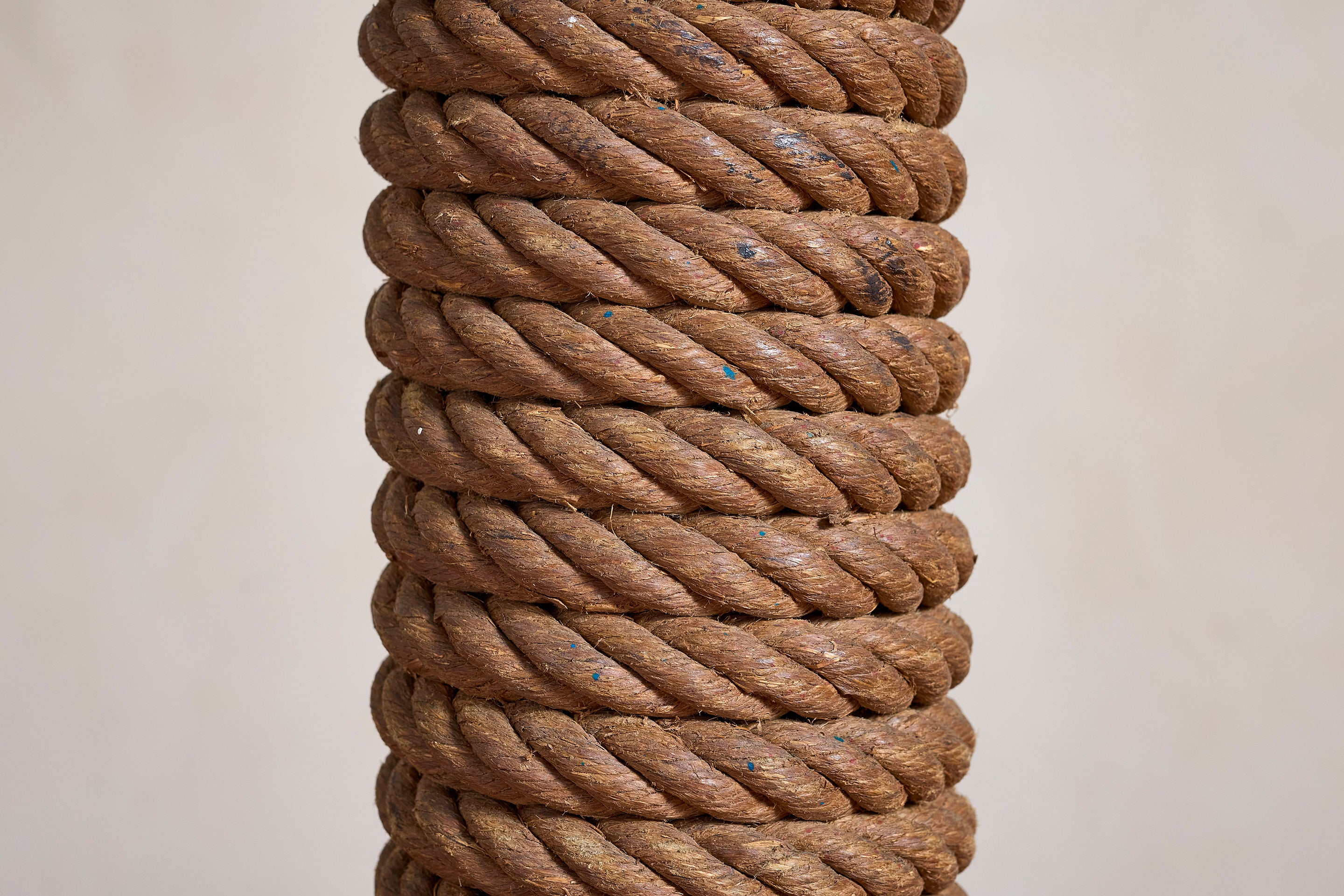 Bent plywood with braided rope with wonderful patina and curved shape.