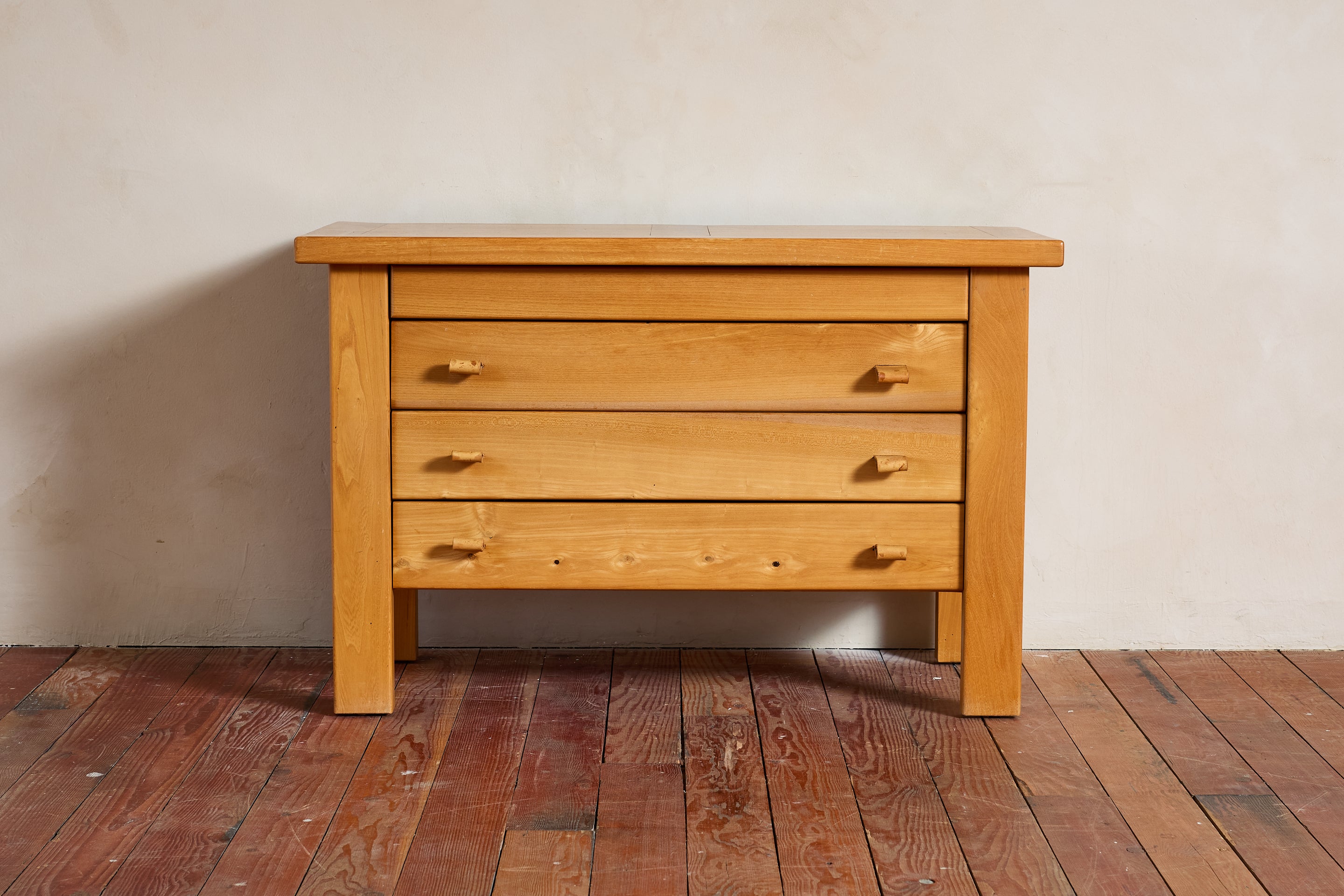 ABOUT Maison Regain chest of drawers with solid elm construction in the style of Pierre Chapo - with leather pulls. Wonderful craftsmanship with natural raw... View full product details